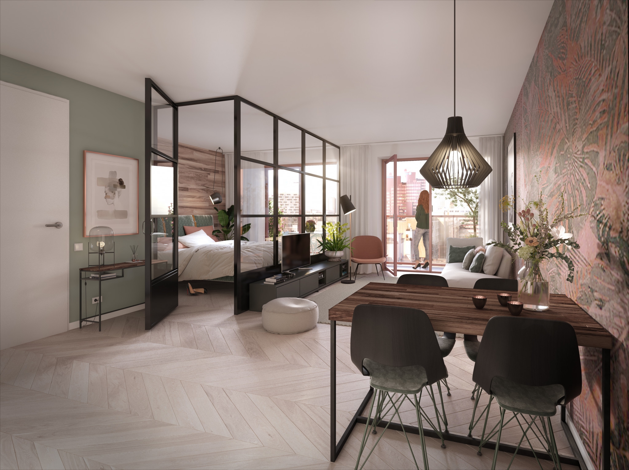 Een heerlijke woonkamer met slaapgedeelte, eigen badkamer en zelf in te delen keuken. Buiten heb je een prachtig uitzicht vanaf je balkon. Je woning is voorzien van vloerverwarming, die tevens koelt in zomerse warmte. In je studio heb je een eigen berging en beneden twee fietsparkeerplaatsen in de gemeenschappelijke stalling. Bij de meeste studio’s is er een optie voor een afgesloten slaapgedeelte.