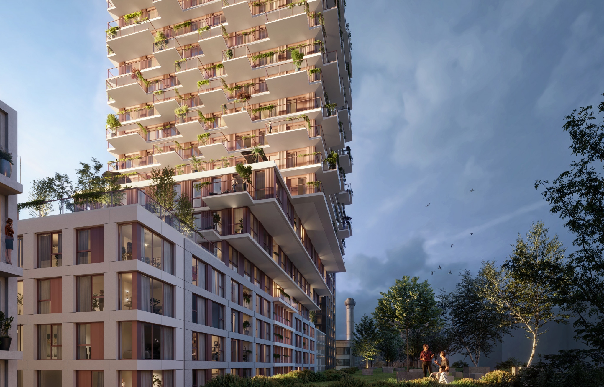 • Gemeenschappelijke daktuin en in de toren tot 9 m² terras